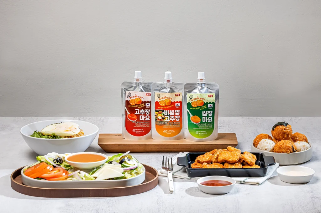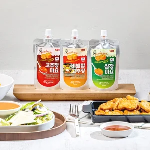 コチュジャンの辛さをマヨネーズのまろやかな香ばしさで包んだディップソースで、伝統コチュジャン、マヨネーズ、ニンニクなどの各種調味料と済州柑橘系濃縮液で作りました。サンドイッチやサラダドレッシングにも最適です。