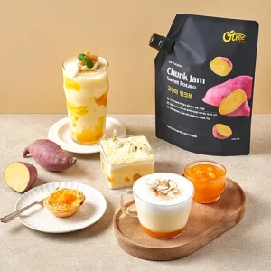 やわらかく流れるような質感と果肉の食感をそのまま感じられるフルーツジャム原料で、ベーカリーフィリングやデザートトッピングのほか、フルーツラテ、エイドなどのドリンクベースとしても活用できる多用途製品です。